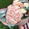 Пушистый, нежный букет в благородных пудровых оттенках. Теплые приглушенные тона напоминают начало осени. Подойдет к любому поводу.